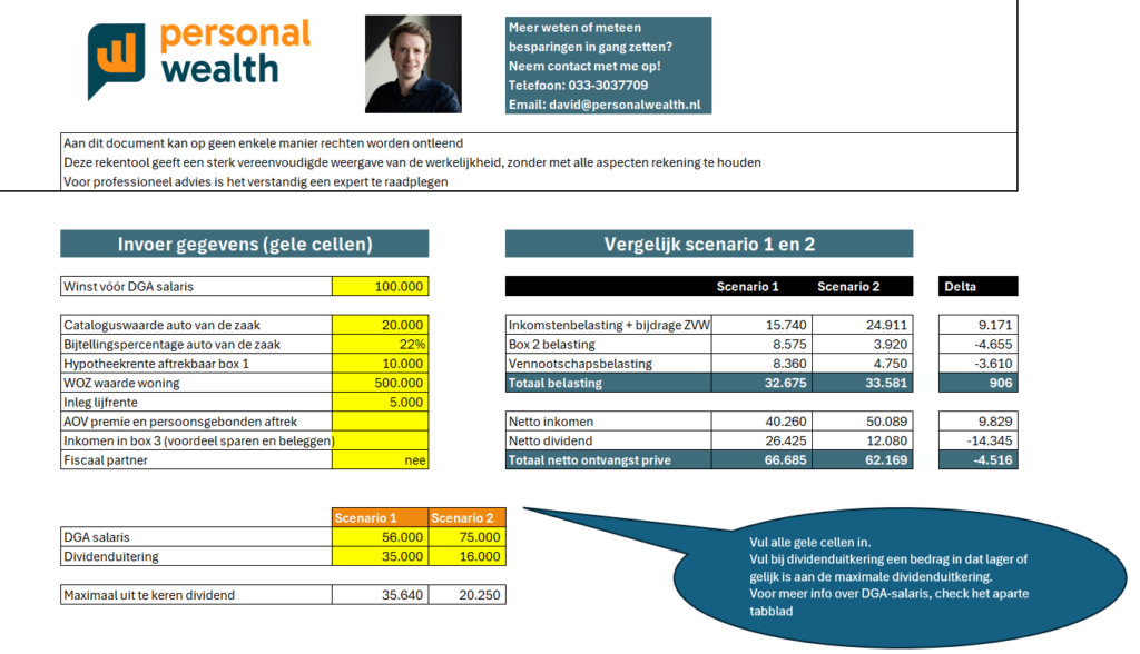 In het artikel bespreek ik 12 manieren waarop je geld uit je BV halen. Met de rekentool kan je zelf aan de slag. Je kan uitrekenen hoeveel belasting je betaalt bij een bepaald DGA-salaris versus een dividenduitkering.